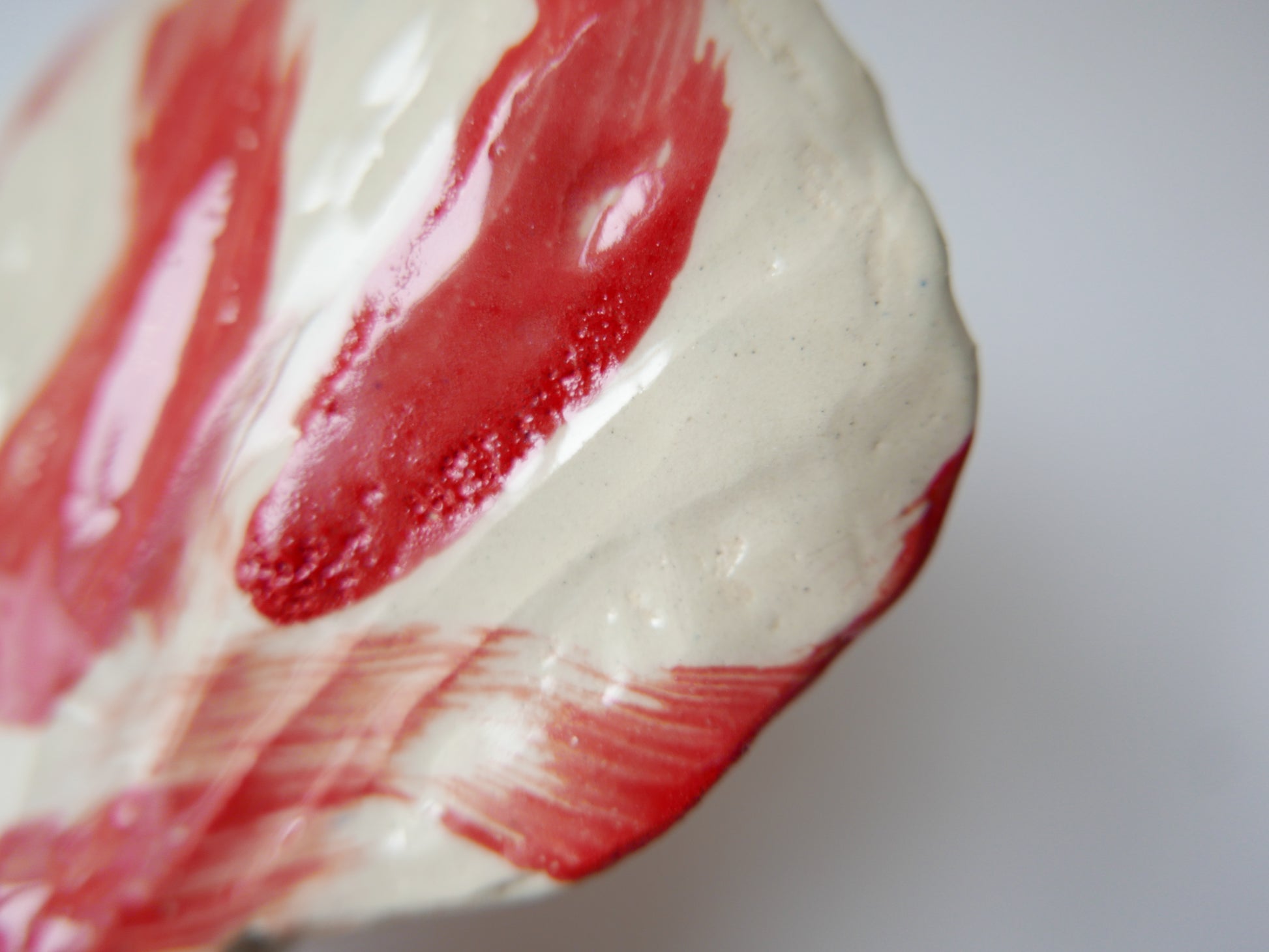 Earthenware ceramic sculpture, fired and glazed.