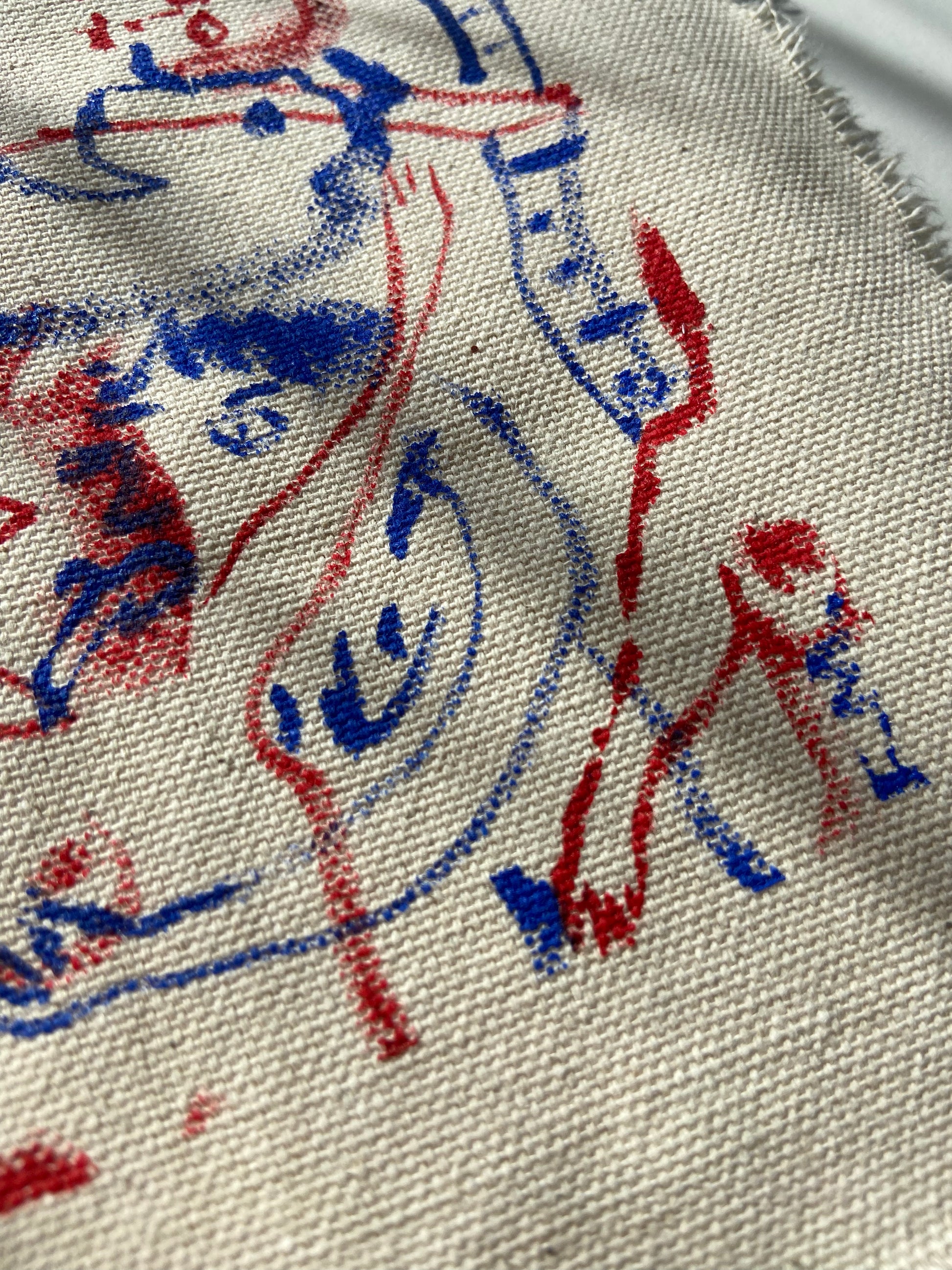 Acrylic paint on raw, un-stretched canvas