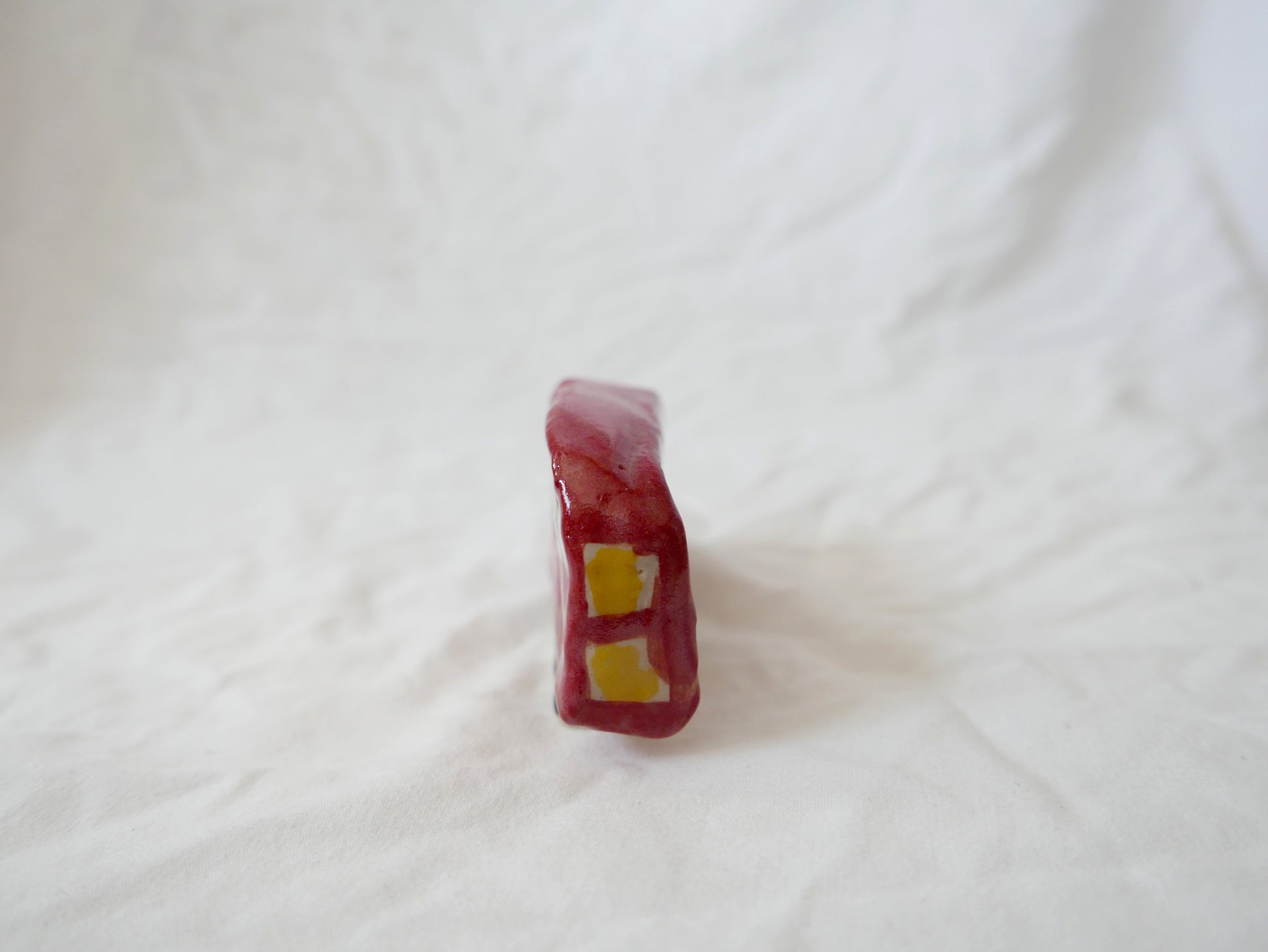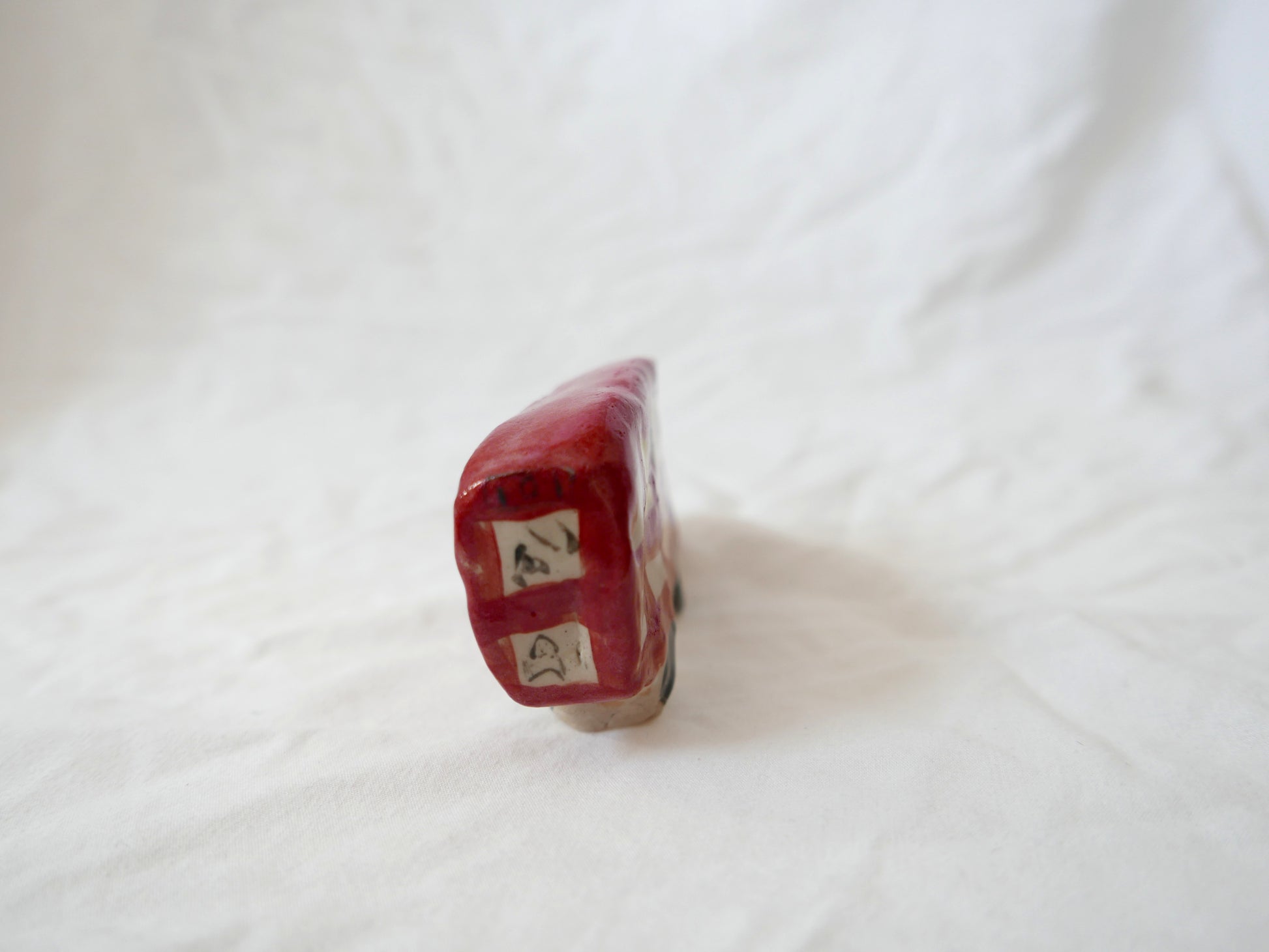 Earthenware ceramic ornament, fired and glazed.