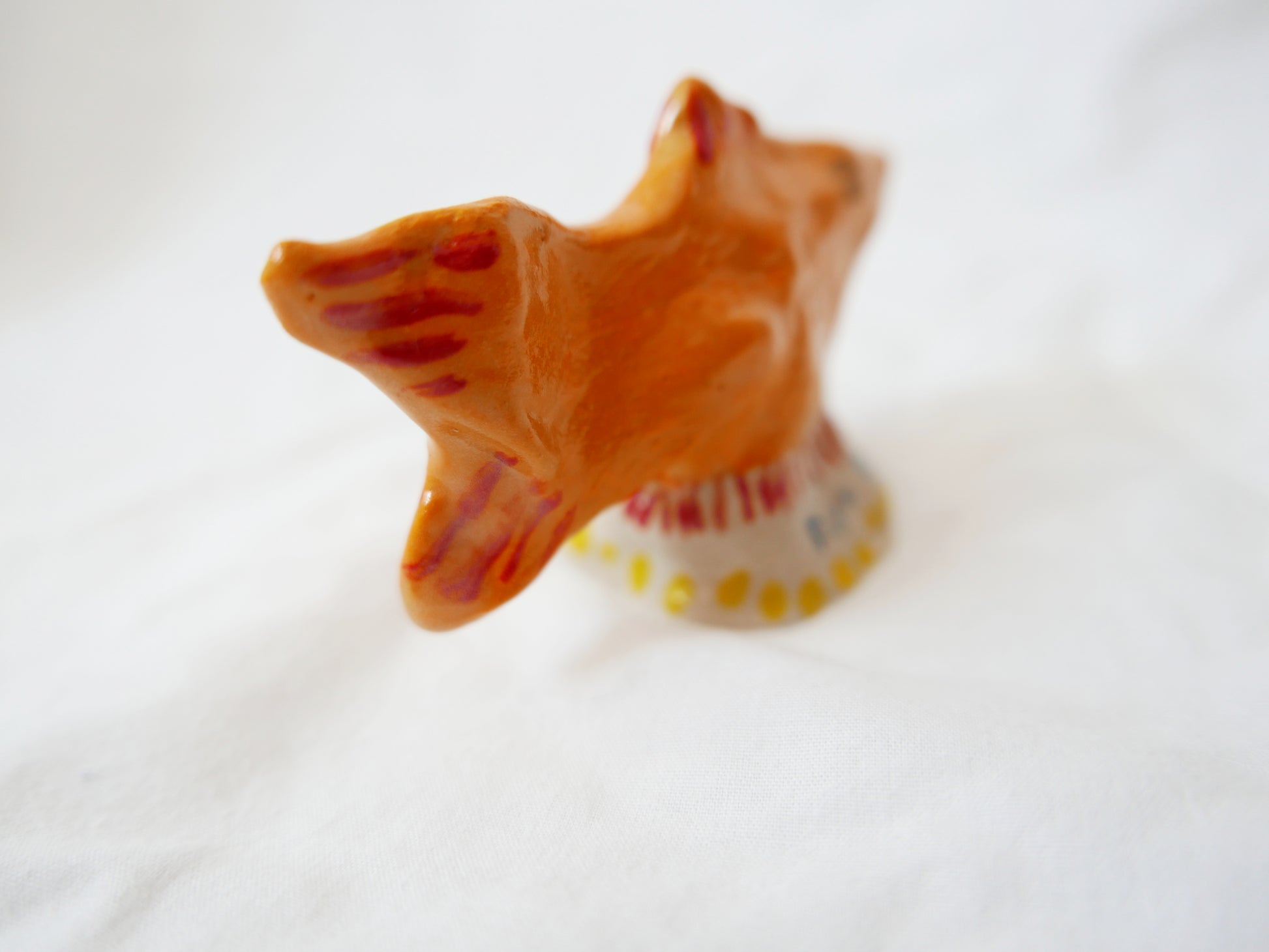 Ships in a small box, well padded with bubble wrap and scrunched up paper. (With 'fragile' stickers plastered all over it.